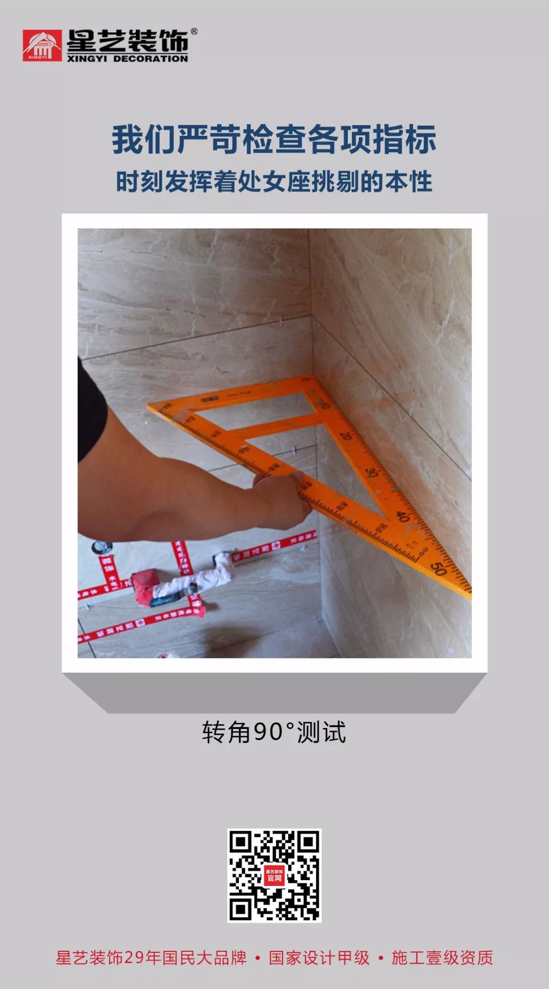 眾所周知,星藝的標(biāo)準(zhǔn)樣板工地已成為行業(yè)標(biāo)桿,但我們深知家裝行業(yè)沒有永遠(yuǎn)的霸主,施工工藝落實(shí)和服務(wù)創(chuàng)新永無止境!沉潛創(chuàng)新、鉆研工藝,滿足業(yè)主所想、超越業(yè)主所需,我們一直在努力!