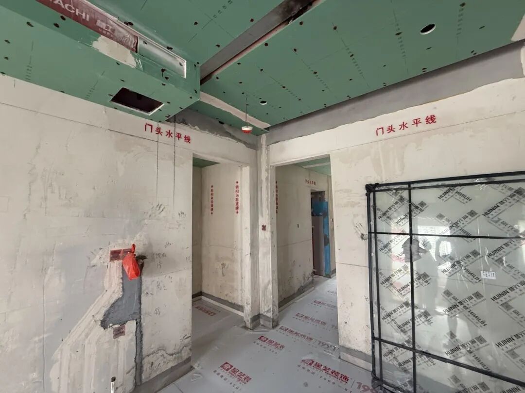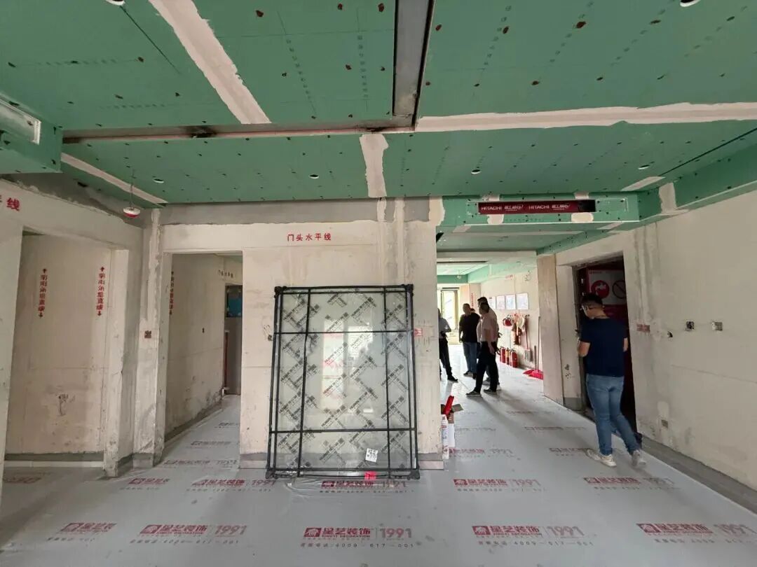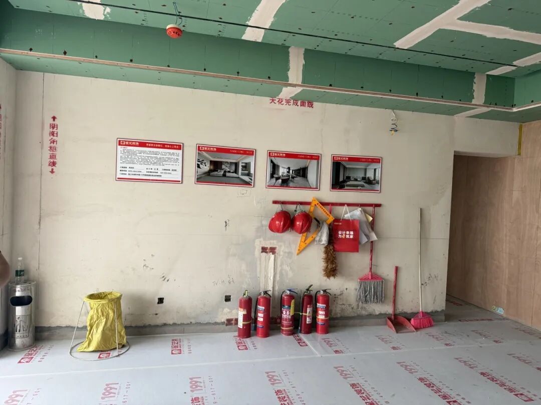 在工地現(xiàn)場整潔有序的環(huán)境讓人眼前一亮。地面鋪設(shè)了保護(hù)膜,材料擺放規(guī)整,施工區(qū)域劃分清晰,每一個(gè)細(xì)節(jié)都彰顯著星藝裝飾對(duì)工程管理的嚴(yán)謹(jǐn)態(tài)度。